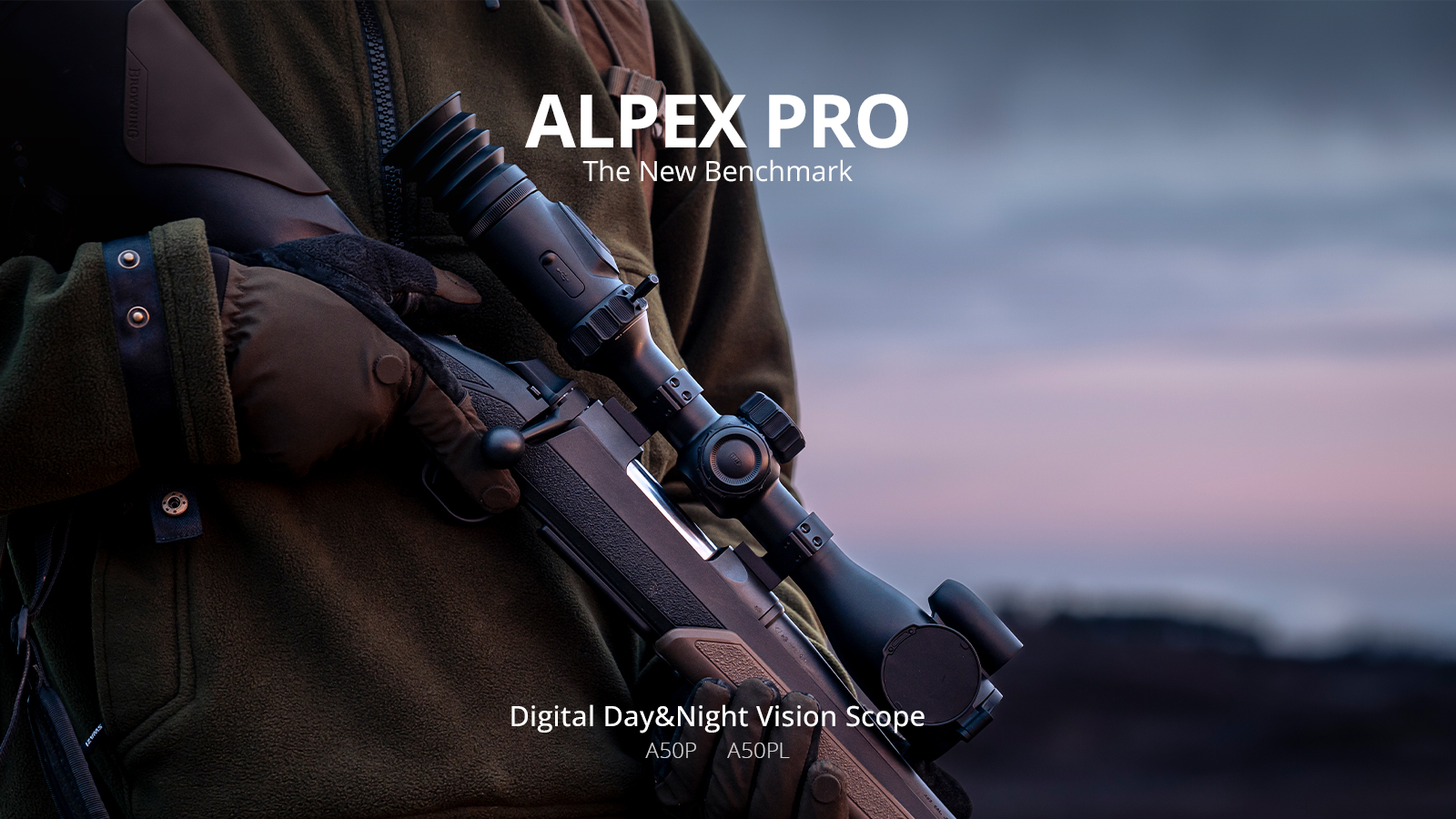 ALPEX PRO sets a new standard in digital hunting optics, building on the proven success of its ALPEX forebears to deliver unrivaled viewing for hunting by day, in twilight and right through the dead of night. Every detail, from low-light clarity to optical-style handling, is developed around how hunters really operate in the field. The result is absolute confidence in a scope inspired by instinctive hunting.