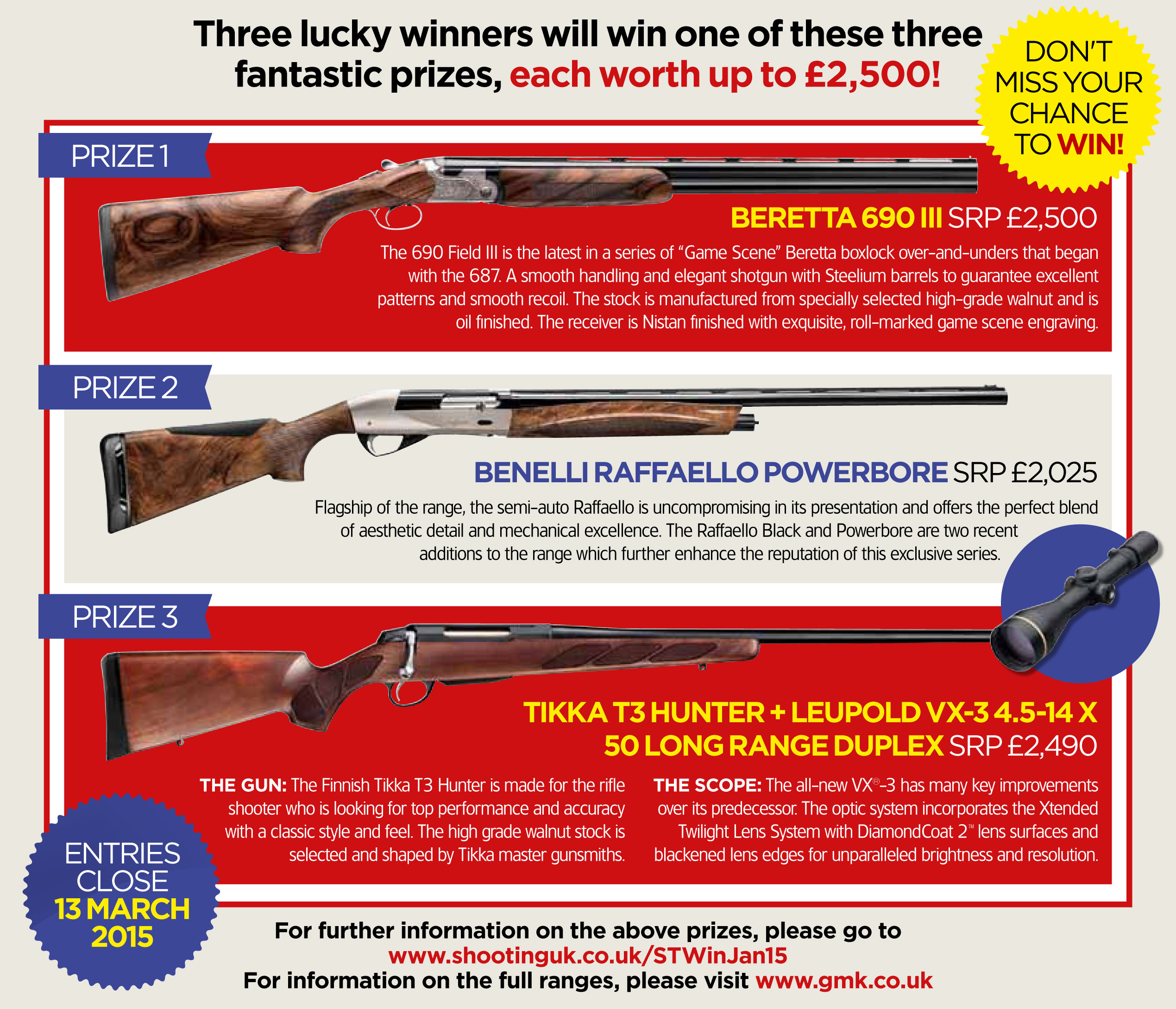 Shooting Times is giving three lucky readers the chance to win one of these three fantastic prizes, each worth up to £2500!