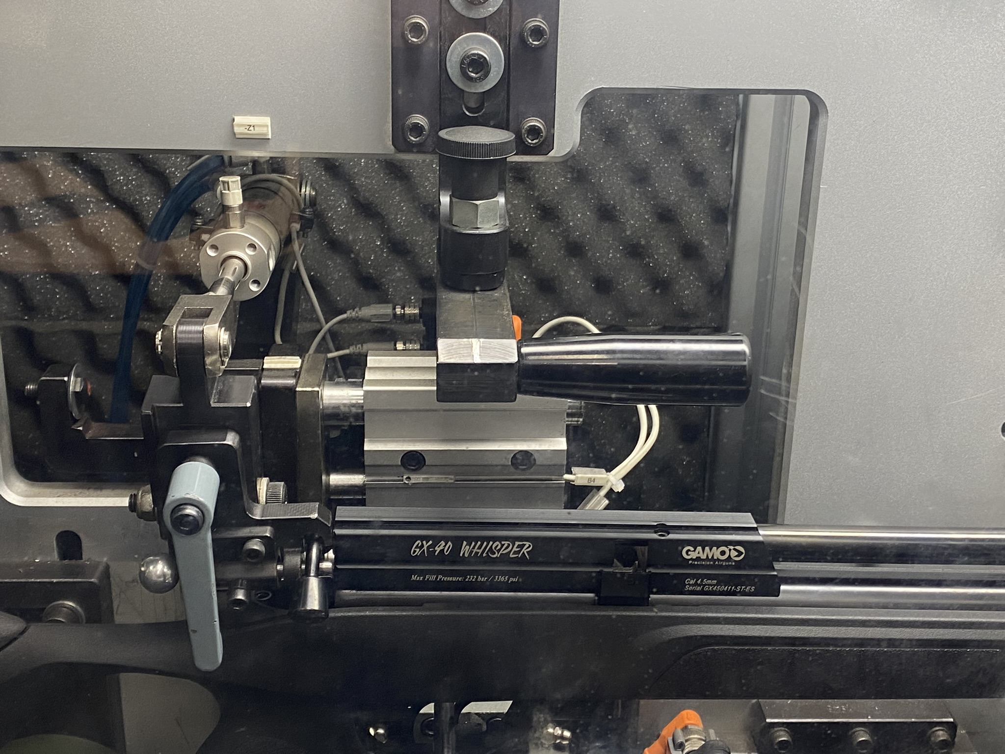 Anyone visiting the factory will be given an instant reminder of the company’s pedigree when they walk through the door, thanks to a display of BSA’s piled arms logo made out of air rifles. Visitors can also see one way in which the company tests its products, as the reception area hosts a machine that subjects a PCP that’s been taken at random from the production line to 10,000 shots. The process takes 72 hours to complete and the machine can even be run overnight with the testing being checked via a camera.