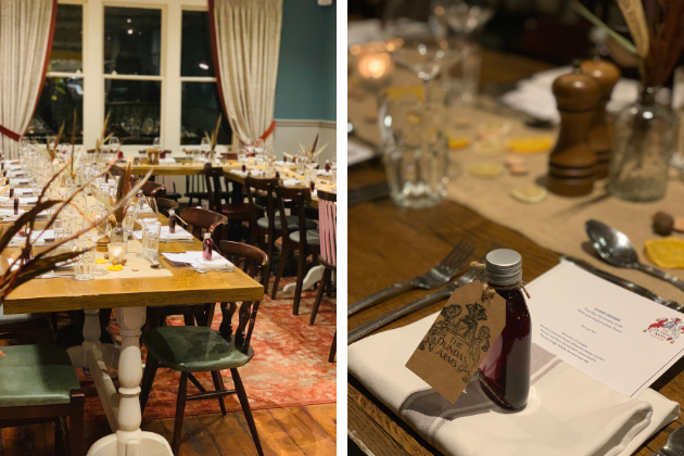 We started with Southern fried buttermilk partridge, served with a crunchy apple and celeriac slaw which provided the perfect counterpoint. The evening was all about providing a gastronomic adventure in game – so our main course was a roasted haunch of Berkshire venison served alongside gamekeeper’s pie, with braised red cabbage and bunched carrots providing delicious colour.